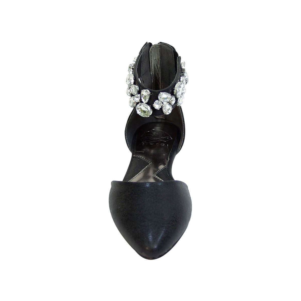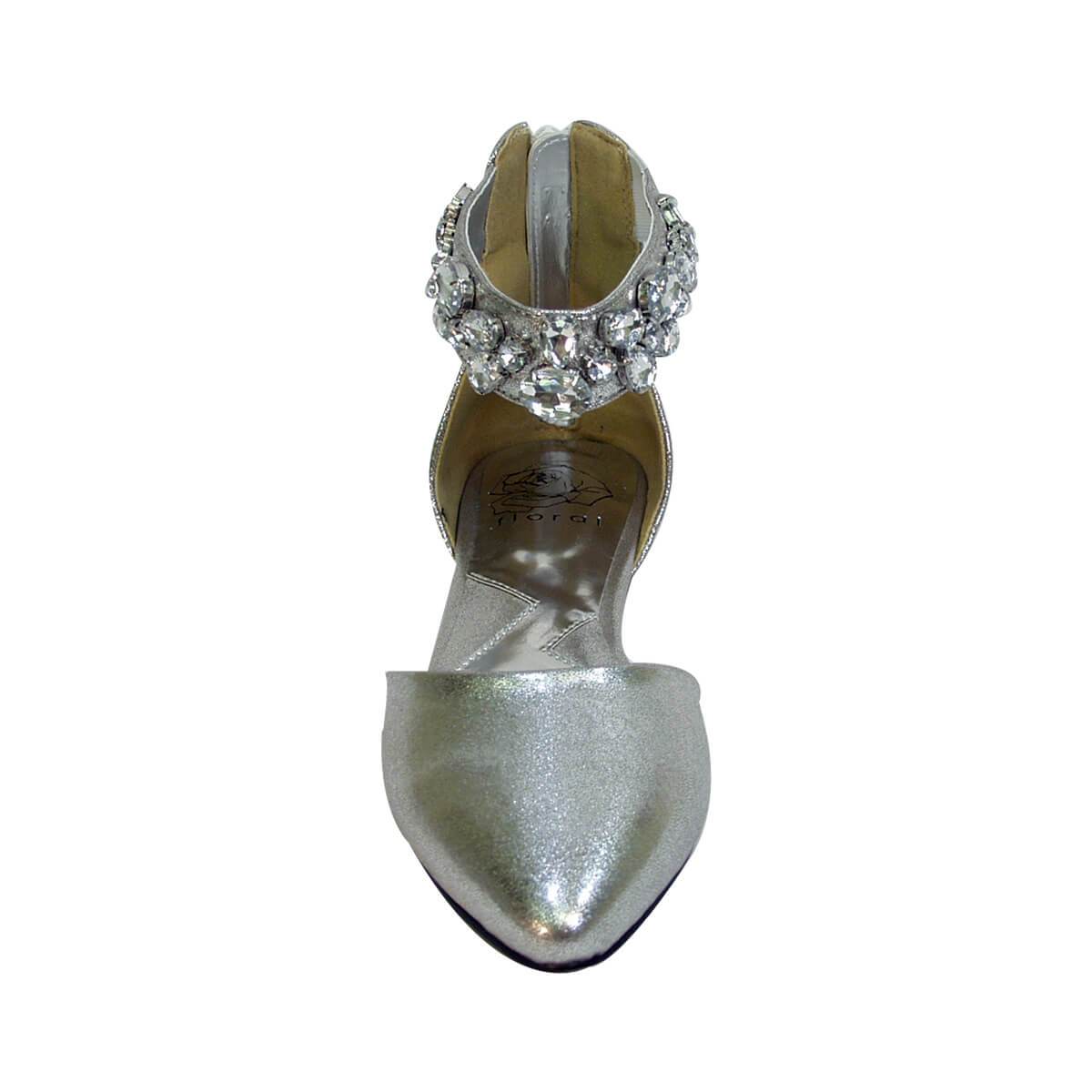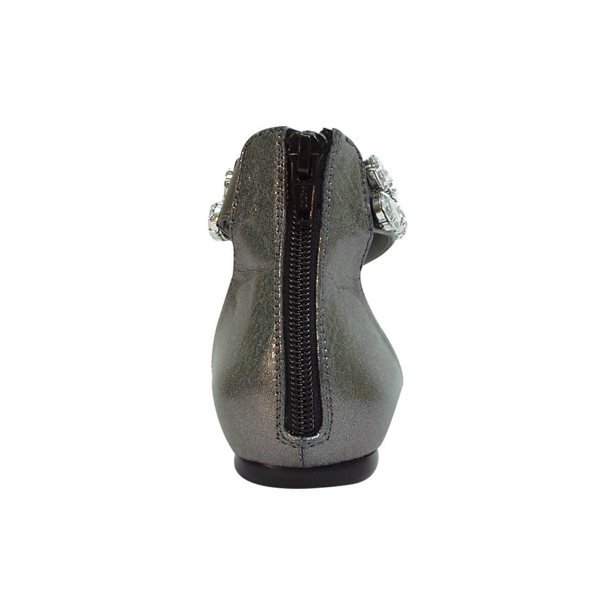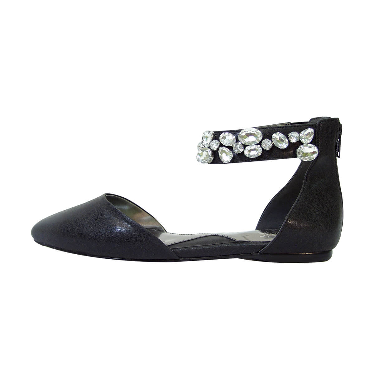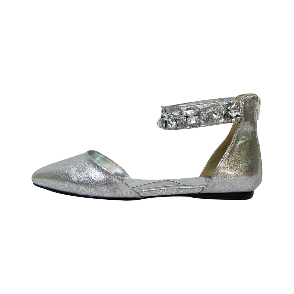FUZZY Jill women’s wide width open shank metallic flat matches easily with any casual or dressy wardrobe. This ladies pointed toe skimmer decorated with crystal ornaments on the ankle strap with a back zipper gives you a fashionable and stylish flair to your look.