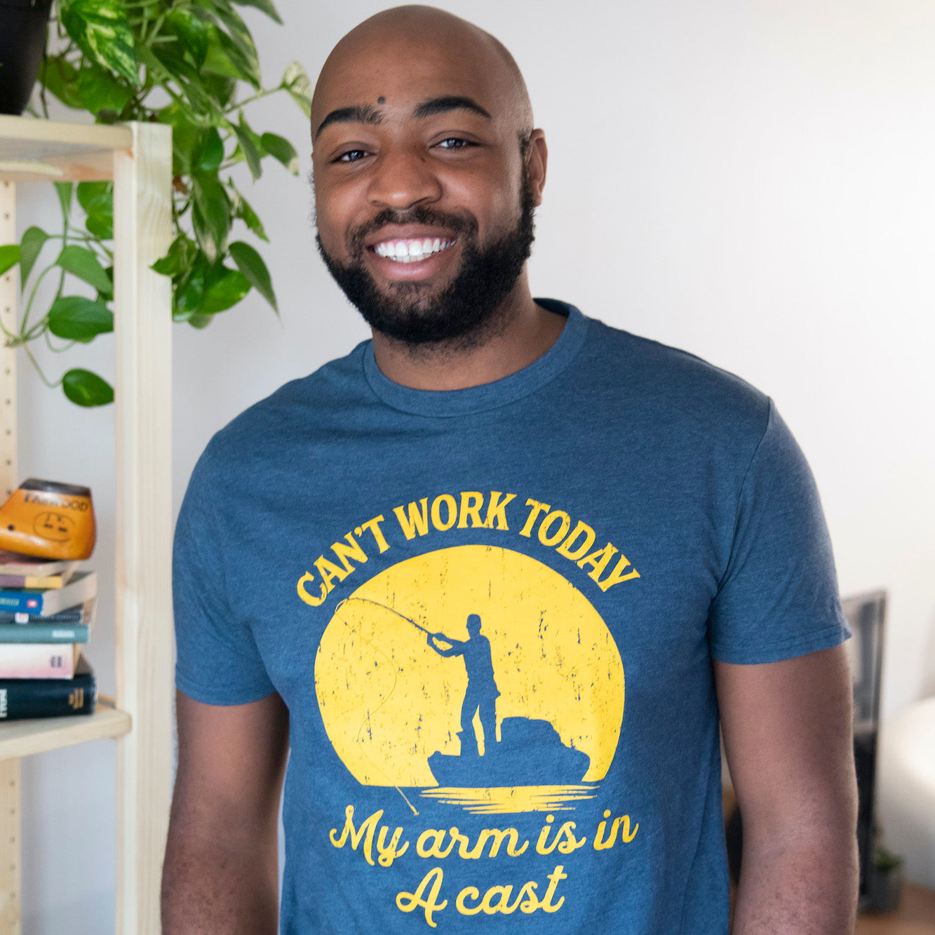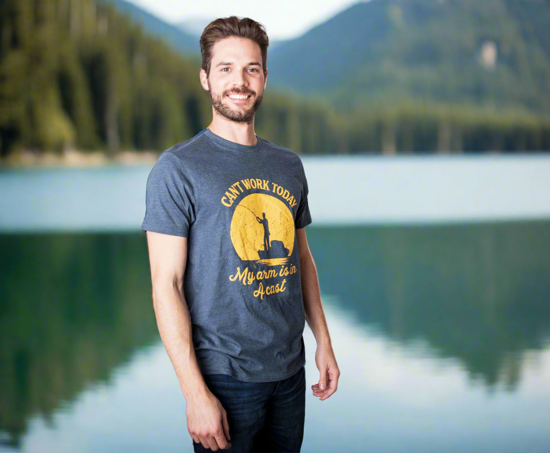 I’m going to need the week off. This funny men’s graphic t-shirt is for the proud fishermen. It is slim fit & comfortable – perfect to go on a fishing trip in. Featuring a relatable fishing quote and hilarious fishing pun for adults. Looking for an affordable gift idea for him? Buy this awesome men’s meme tee!